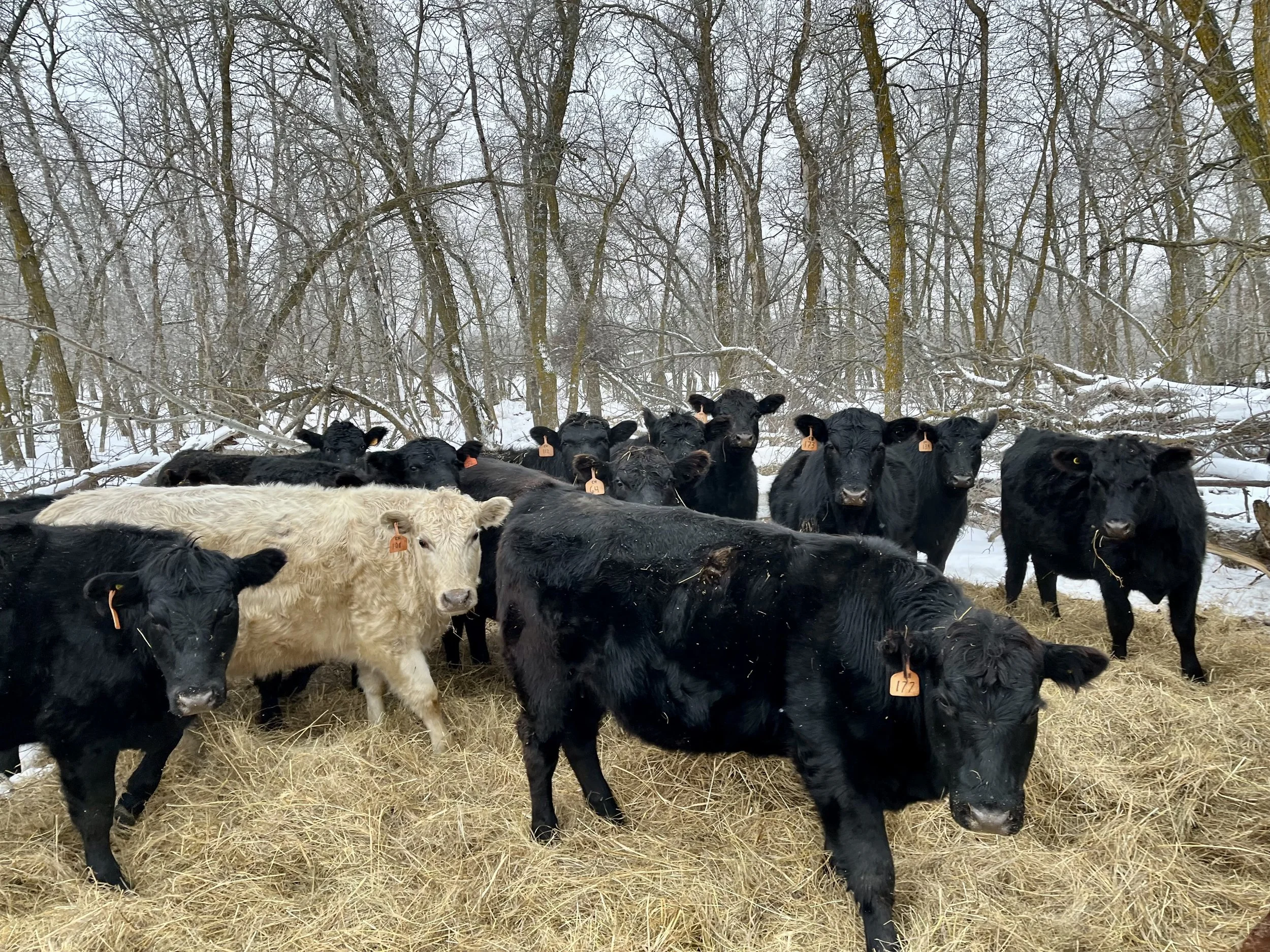 Details: Gentle and quiet group. Heifers respect an electric fence very well. Used in a quick moving rotational grazing system with single strand high tensile/poly electric fence and traditional barbed wire fences. They come when called to new pasture. Have also been worked and driven by horses, dogs, and quads.