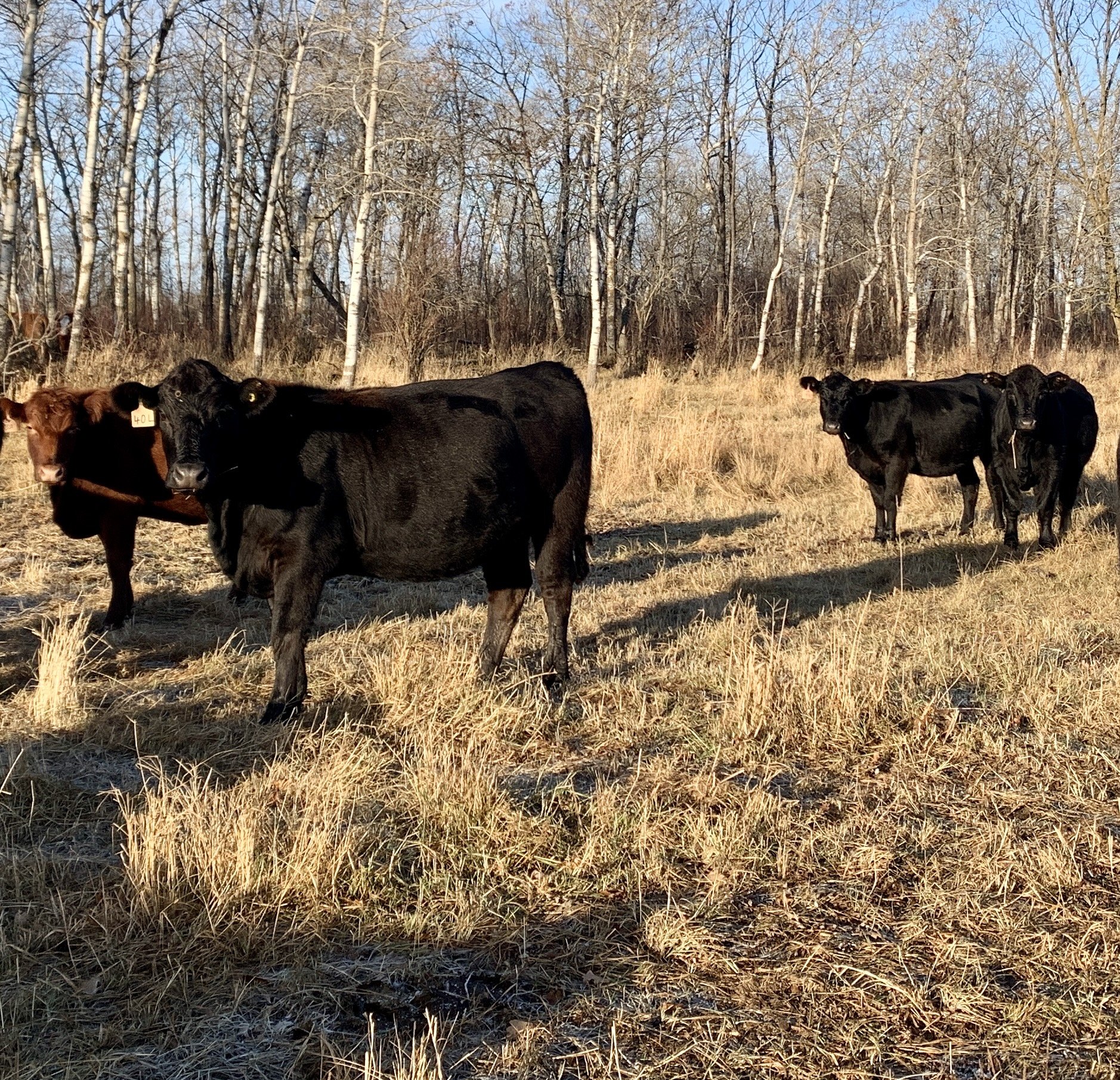 Details: Gentle and quiet group. Heifers respect an electric fence very well. Used in a quick moving rotational grazing system with single strand high tensile/poly electric fence and traditional barbed wire fences. They come when called to new pasture. Have also been worked and driven by horses, dogs, and quads.